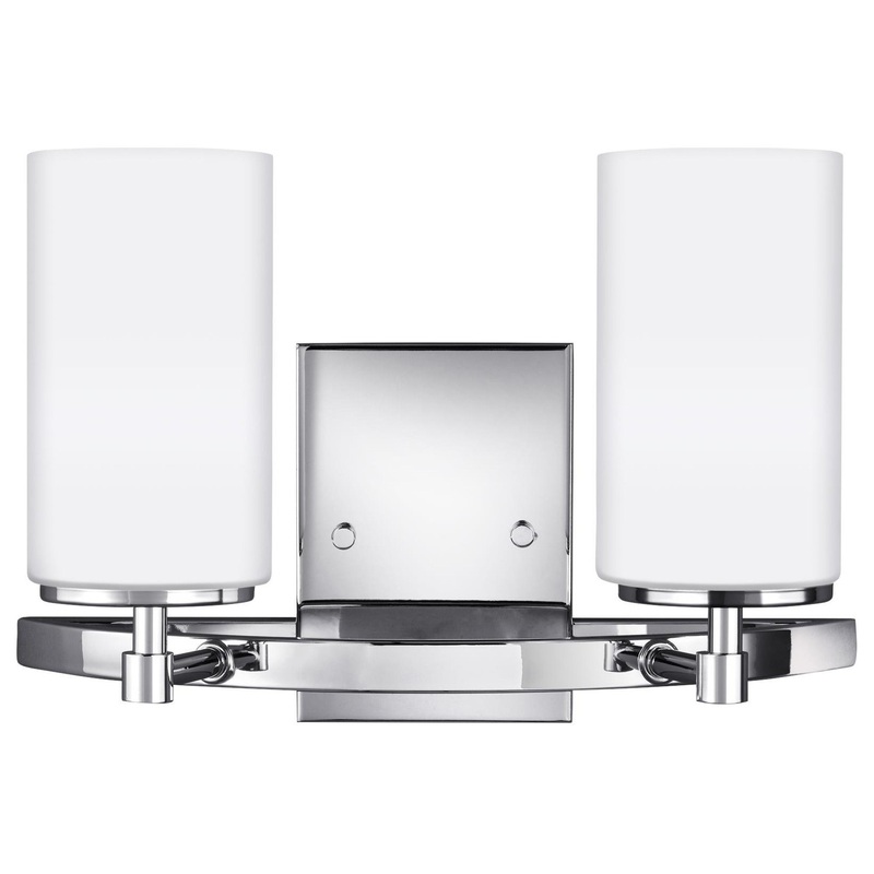 The Sea Gull Collection Alturas two-light traditional vanity fixture is offered in a chrome, brushed oil rubbed bronze, Satin bronze or brushed nickel finish and features an interlocking, spherical steel frame with a cool, reflective surface. The smooth glow emitted from the cylindrical Satin Etched glass shades can bring a transitional style to your space, allowing for a range of interior design features. If you are starting to convert to a more sustainable lifestyle, this ENERGY STAR qualified lighting fixture uses LED bulbs to save you both time and money. The Sea Gull Collection by Generation Lighting has been an industry leader since 1919. Sea Gulls promise is simple to create beautiful lighting at an affordable value. From space, to function, to style and energy efficiency, Sea Gull offers complete solutions.