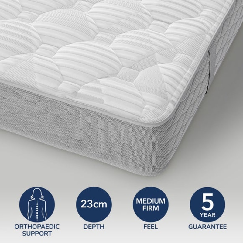Edge to edge support maximises the sleeping surface and ensures greater stability. A combination of premium foams in medium and firm densities work to offer comfort and cushioning, and the quilted top adds a smooth finish.