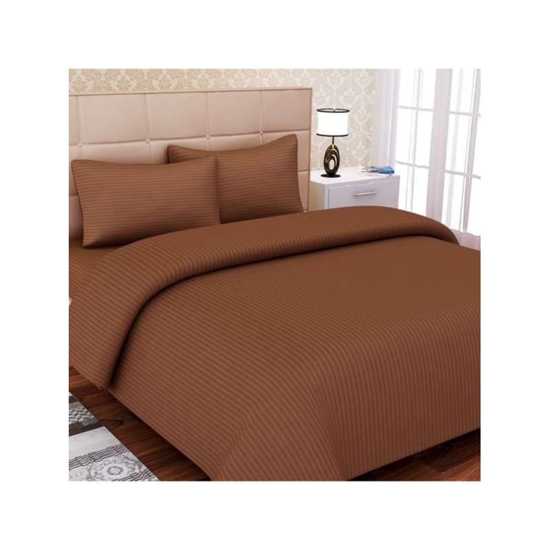 Flaunting classy and attractive tones, this brown bedsheet set from SEJ by Nisha Gupta is sure to add a unique twist to your room. To ensure you a luxuriously soft feel, this set is tailored using cotton with a thread count of 220. Exhibiting a stripes pattern, this set comprises 1 bedsheet and 2 pillow covers that will lend your bedroom a rich look.