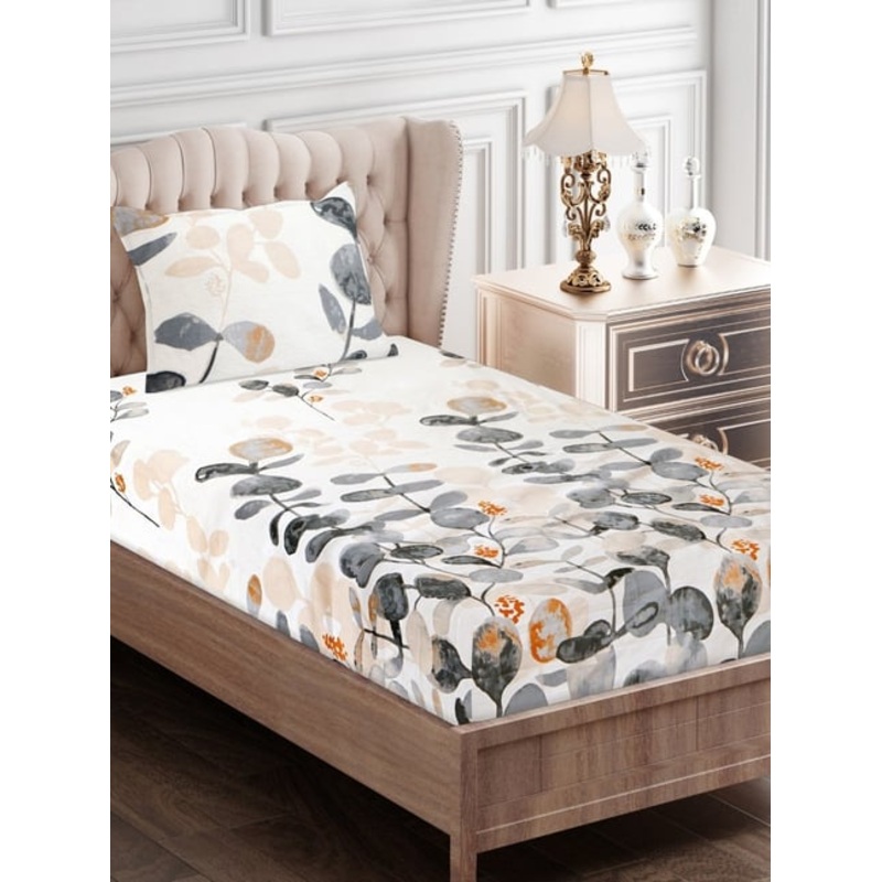 SEJ by Nisha Gupta Floral Blue 210 TC Cotton Single Bed Sheet with 1 Pillow Cover