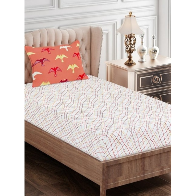SEJ by Nisha Gupta Geometric Red 160 TC Cotton Single Bed Sheet with 1 Pillow Cover