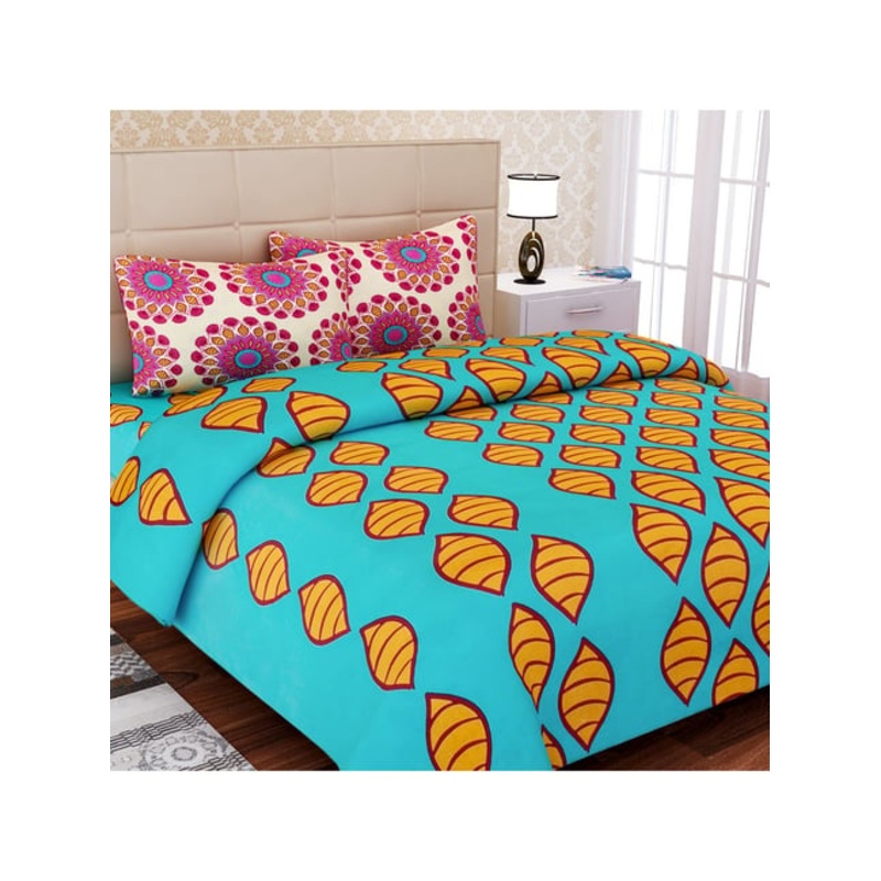 Add another dimension of style to your bedroom with this green bedsheet set from SEJ by Nisha Gupta and have a blissful sleep. Tailored using cotton with a thread count of 144, this set with an abstract pattern will instantly lift up the look of your bedroom. Comprising 1 bedsheet and 2 pillow covers, this set is sure to transform your bedroom into heaven.