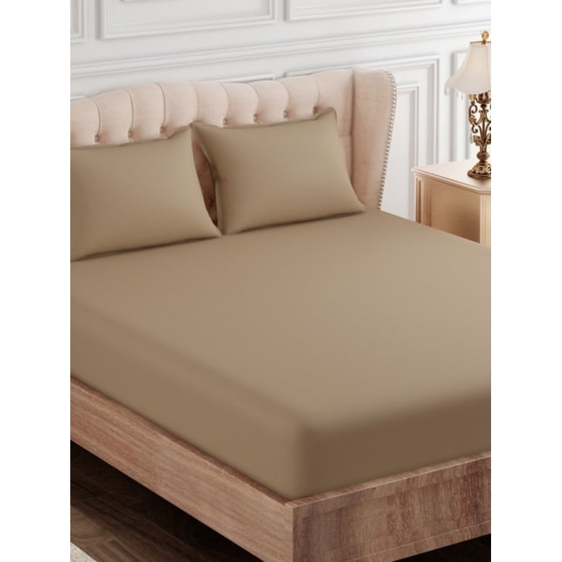 SEJ by Nisha Gupta Solid Brown 300 TC Cotton King Bed Sheet with 2 Pillow Covers
