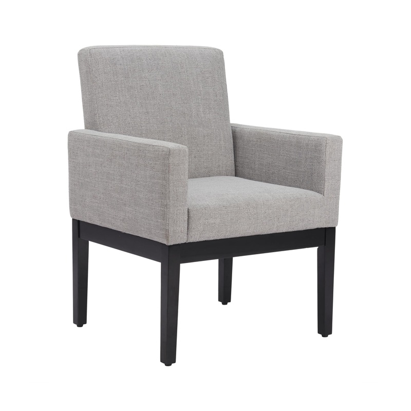 Senzil Dining Chair GrayThe Senzil Dining Chair stands out with its arms, wooden frame, and fabric-covered seat, blending modern and deco influences seamlessly. Ideal for both residential and hospitality settings, it exudes sophistication and comfort. Whet