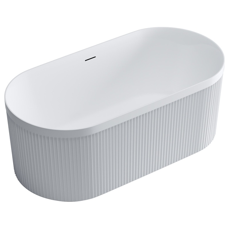 Elevate your bathing ritual with our 75-gallon fluted oval-shaped acrylic soaking tub. Immerse yourself in style and comfort as the elegant fluted design adds a touch of sophistication to your bathroom. With a generous capacity, this tub promises a rejuvenating experience, allowing you to soak away the day’s stress in pure luxury. Available in matte white and matte black. Drain not included.