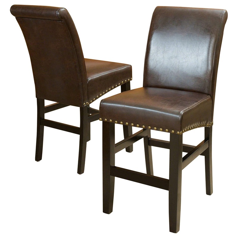 -Includes 2 counter stools -Frame engineered of solid hardwood -Upholstered with fine bonded Leather in Brown with brass nailhead accents -Easy to assemble (tools and instructions included) -Dimensions: 25. 95"L x 18"W x 41. 25"H, Seat: 17"l x 18"W x 25"hP