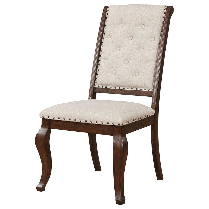 -Set includes: Two (2) dining chairs -Materials: Asian hardwood and fabric -Material Content: 100% polyester -Fabric Color: Cream.Cabriole legs -Finish Color: Antique java -Assembly Required: Yes -Seat construction: Seat frameProduct ID185444251Manufacture