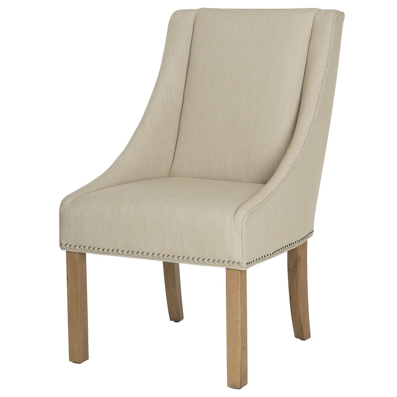 -These dining chairs will add a fresh look to any room -The beige upholstery and weathered oak finish of these dining chairs will add the perfect accent to your home -Crafted of Birchwood, and upholstered in linen -Perfect for a living room, family room, d