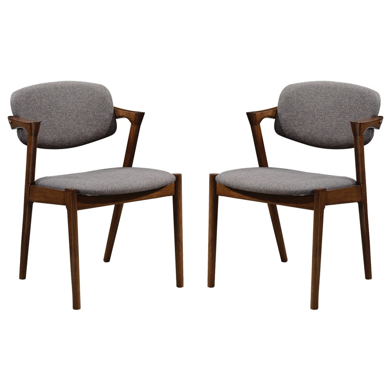Set of 2 Dining Side Chairs, Gray and Dark Walnut – Midcentury – Dining Chairs – by Simple Relax