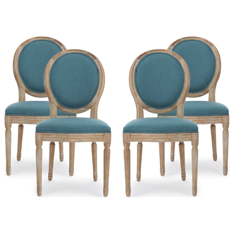 Set of 4 Dining Chair, Natural Wood Frame & Fabric Seat & Oval Back – French Country – Dining Chairs – by Decor Love-WMDL0623-586156214