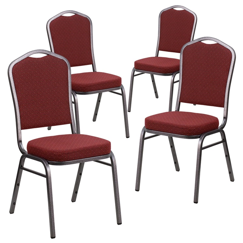 -Set of 4 Multipurpose Crown Back Banquet Chairs for All Occasions -500 lb. Weight Capacity -Stack Quantity: 15 -2.5" Thick Seat Cushion with CAL 117 Fire Retardant Foam -16 Gauge Steel Frame with bumper guards to protect finish while stacked -Floor Protec