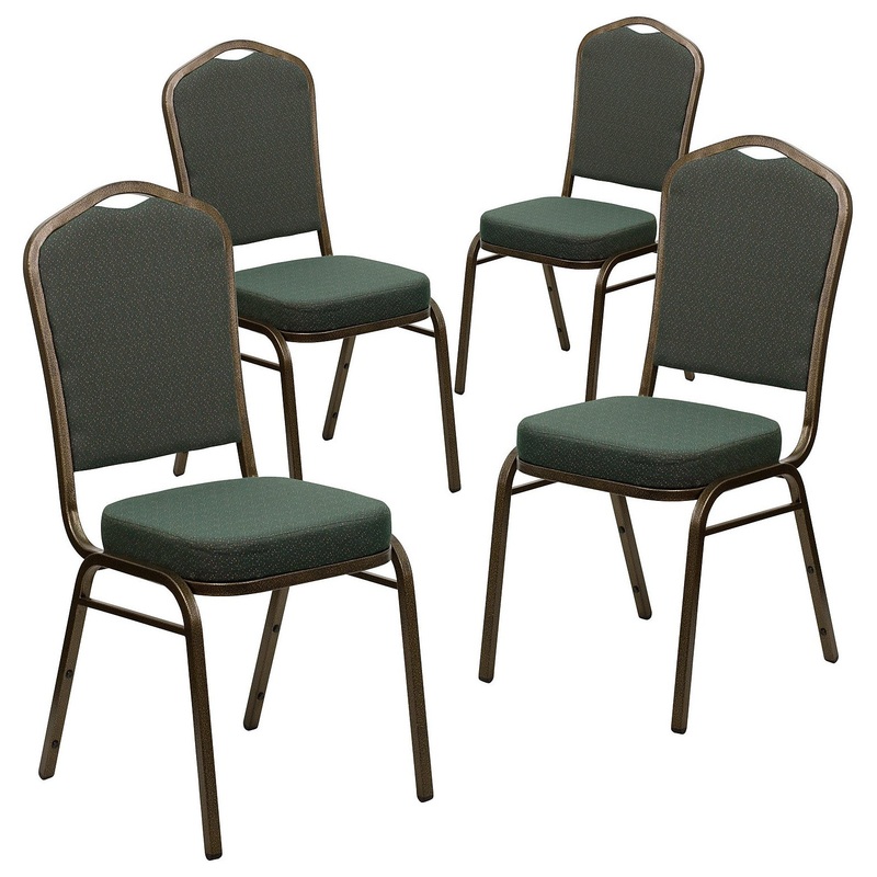 -Set of 4 Multipurpose Crown Back Banquet Chairs for All Occasions -500 lb. Weight Capacity -Stack Quantity: 15 -2.5" Thick Seat Cushion with CAL 117 Fire Retardant Foam -16 Gauge Steel Frame with bumper guards to protect finish while stacked -Floor Protec
