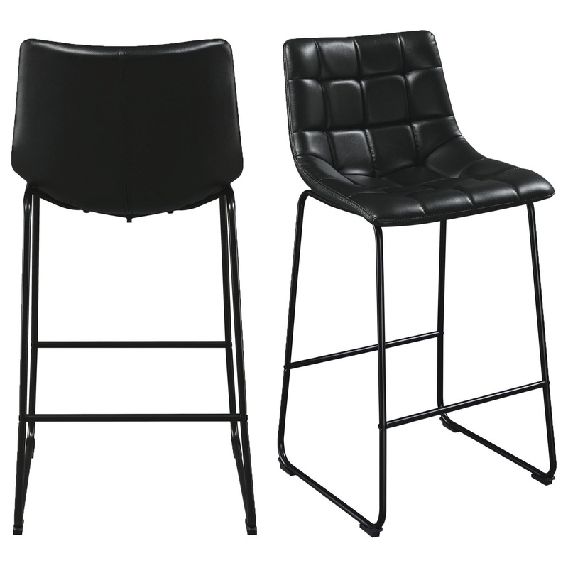 The Picket House Furnishings Richmond Metal Bar Stool Set is the missing piece to complete your home! This fashionable set comes with two bar stools and are upholstered in a faux leather fabric. The fabric features square stitching and tufting, adding extra flare to this already stylish set. These bar stools have a metal frame, which pairs perfectly with the faux leather; creating the ultimate rustic, industrial design. The seat and back are foam filled, ensuring hours of comfort while you sit back and catch up with friends. Stretchers along the front and back offer additional support, without losing style; making this set the perfect addition to your home!