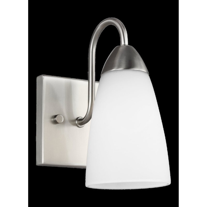 The Generation Lighting Lighting Seville one light wall sconce in brushed nickel provides abundant light for your bath vanity, while adding a layer of today's style to your interior design. The Seville collection represents commitment to high style at a sh