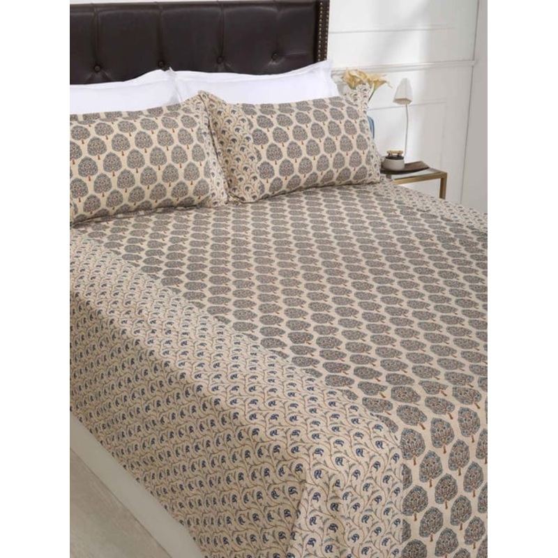 Wake up refreshed and rejuvenated on this cloud-like set of 1 vruksh double bedsheet and 2 pillow covers from Shahenaz. The luxuriously soft and breathable cotton fabric of 120 TC with a plain weave ensures a comfortable sleep, while the rich colors and captivating designs transform your bedroom into a tranquil oasis. This set adds a touch of sophistication to your slumber sanctuary.