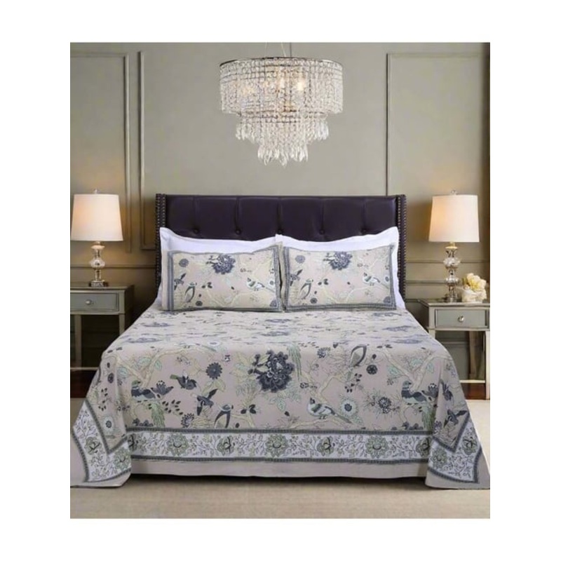 Be the first to review “Shahenaz Beige & Grey 120 TC Cotton Rama Double Bedsheet with 2 Pillow Covers”