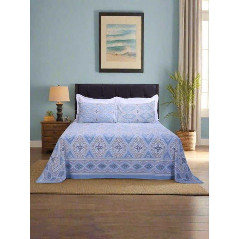 Embrace the night with this elegantly crafted set of 1 ikkat paan double bedsheet and 2 pillow covers from Shahenaz. The luxuriously soft and breathable cotton fabric of 120 TC with a plain weave ensures a comfortable sleep, while the rich colors and capti