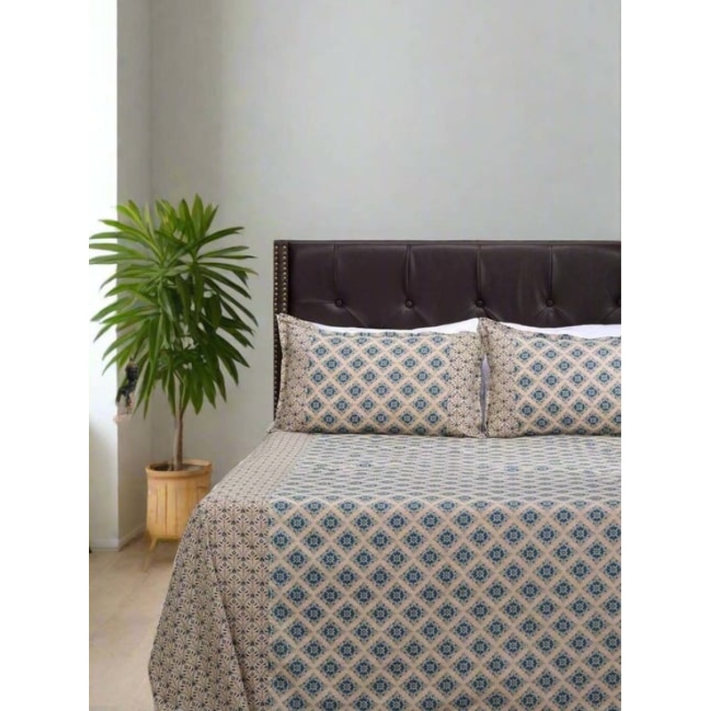 Shahenaz Blue & Beige 120 TC Cotton Anjali Single Bedsheet with 2 Pillow Covers