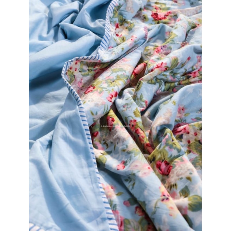 Shahenaz Brindavan Floral Blue Cotton Single Reversible Dohar
