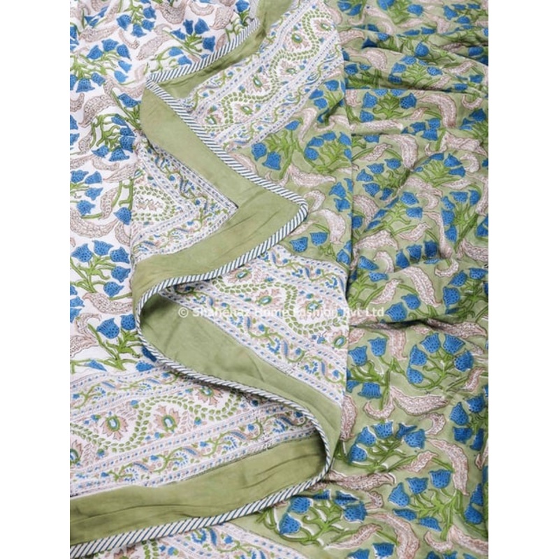 Shahenaz Butter Cup Bloom Floral Green Cotton Single Reversible Dohar