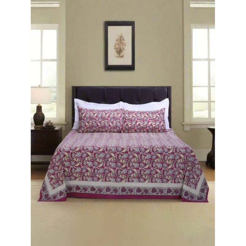 Indulge in the embrace of this cozy and stylish set of 1 maurya double bedsheet and 2 pillow covers from Shahenaz. The luxuriously soft and breathable cotton fabric of 120 TC with a plain weave ensures a comfortable sleep, while the rich colors and captivating designs transform your bedroom into a tranquil oasis. This set adds a touch of sophistication to your slumber sanctuary.