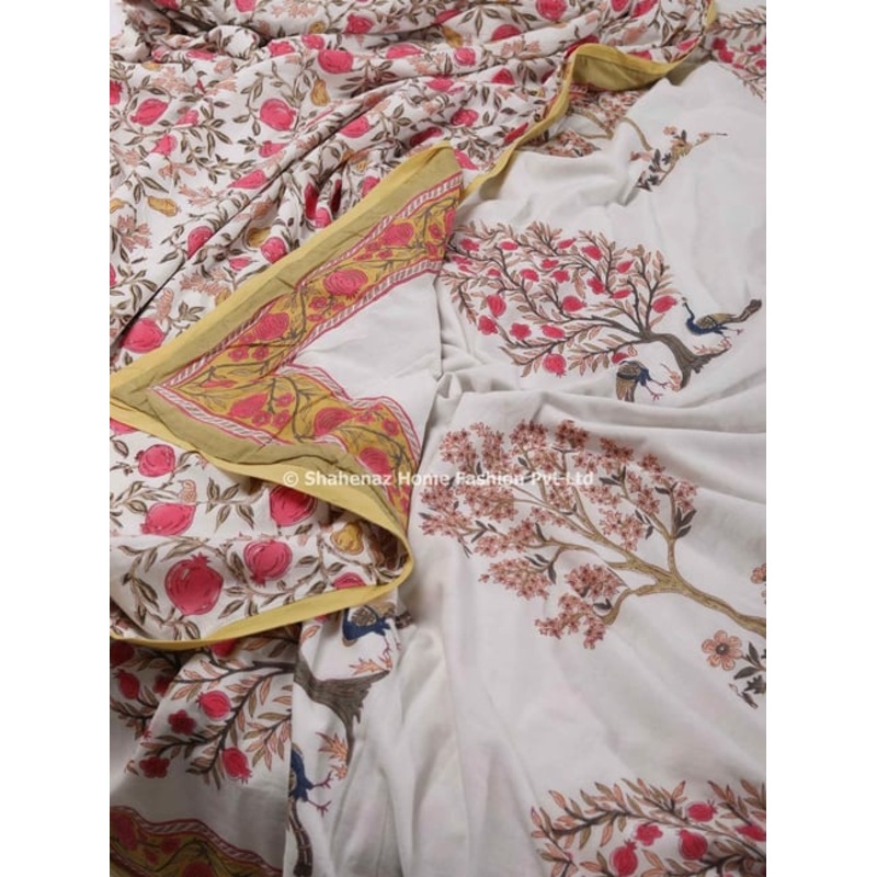 Immerse Yourself in Earthy Elegance: Fergana Dohar. Unwind in a haven of understated beauty with the Fergana Dohar. Crafted from 100 percent breathable cotton muslin, this lightweight coverlet features a captivating hand-block printed design in a sophisticated shade of beige. A Celebration of Delicate Craft: This dohar showcases three layers of luxuriously soft, organic muslin meticulously stitched together. The top layer boasts a captivating all-over hand-block printed design, showcasing traditional motifs and patterns.