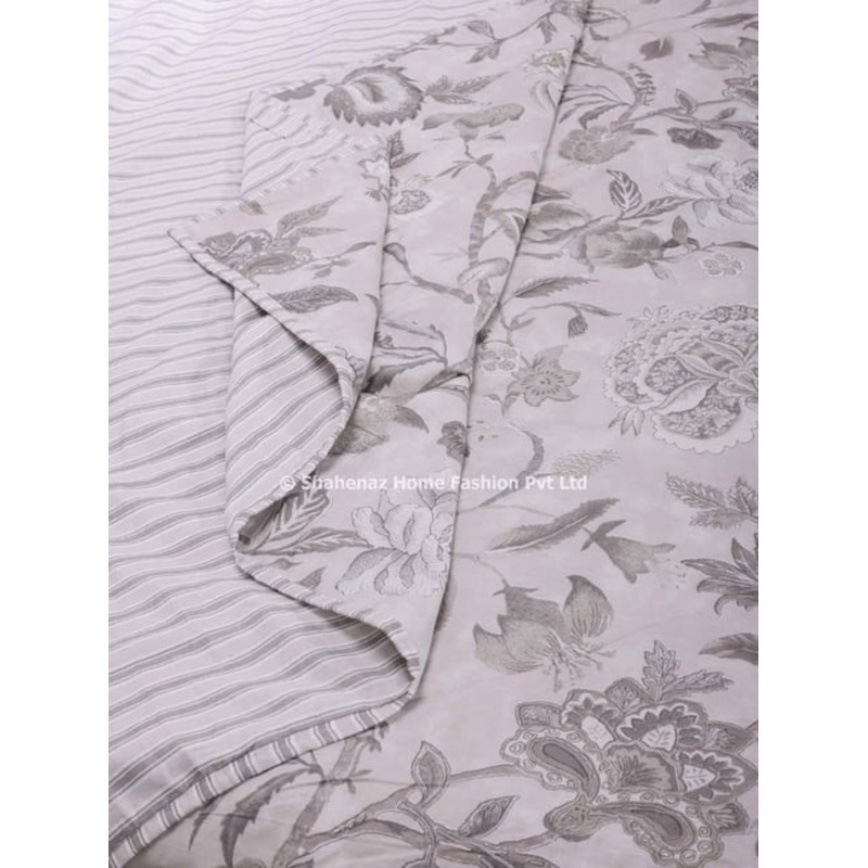 Timeless Comfort Meets Elegance: Gloxina Print Dohar. Unwind in luxurious softness with the Shahenaz Gloxina Print Grey Dohar. Handcrafted from 100 percent breathable cotton muslin, this dohar features a timeless Gloxina floral print in a calming shade of grey. Inspired by nature, it adds a touch of sophistication and tranquility to your bedroom. Reversible Design, Double the Luxury: One side showcases the captivating Gloxina print in elegant grey. Flip it over for a calming print, offering two beautiful looks in one.