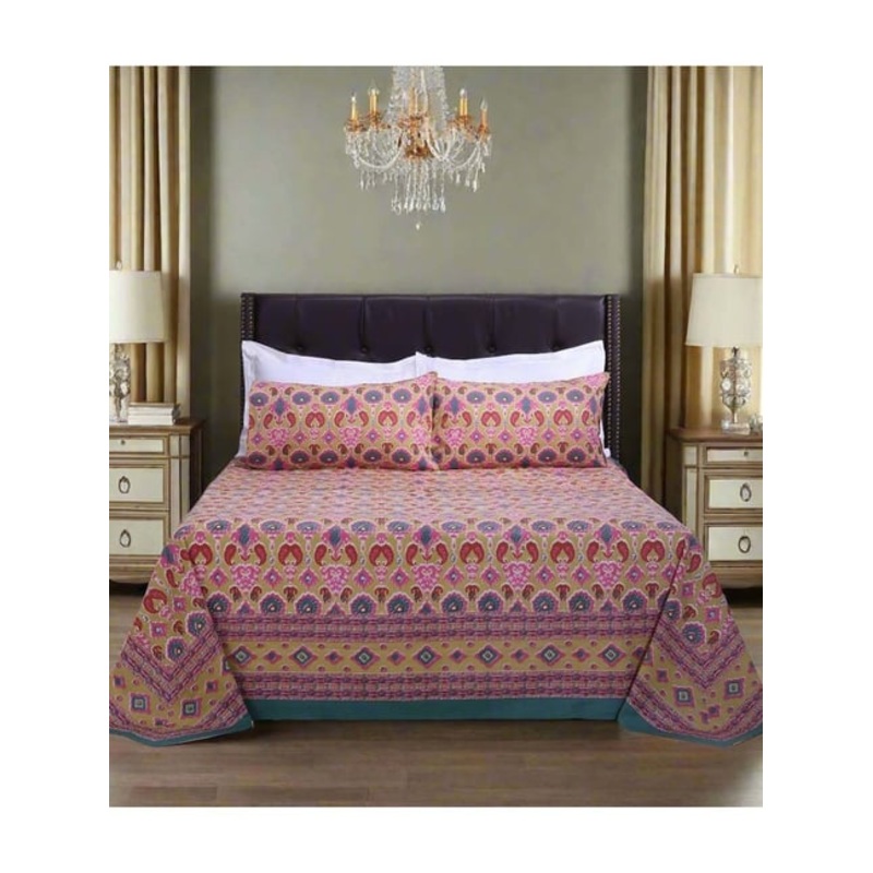 Experience bedtime bliss with this chic and comfortable set of 1 mahi double bedsheet and 2 pillow covers from Shahenaz. The luxuriously soft and breathable cotton fabric of 120 TC with a plain weave ensures a comfortable sleep, while the rich colors and captivating designs transform your bedroom into a tranquil oasis. This set adds a touch of sophistication to your slumber sanctuary.