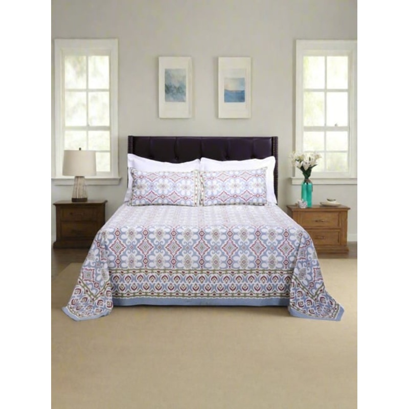 Make bedtime your favorite time with this irresistibly soft set of 1 azariah double bedsheet and 2 pillow covers from Shahenaz. The luxuriously soft and breathable cotton fabric of 120 TC with a plain weave ensures a comfortable sleep, while the rich colors and captivating designs transform your bedroom into a tranquil oasis. This set adds a touch of sophistication to your slumber sanctuary.