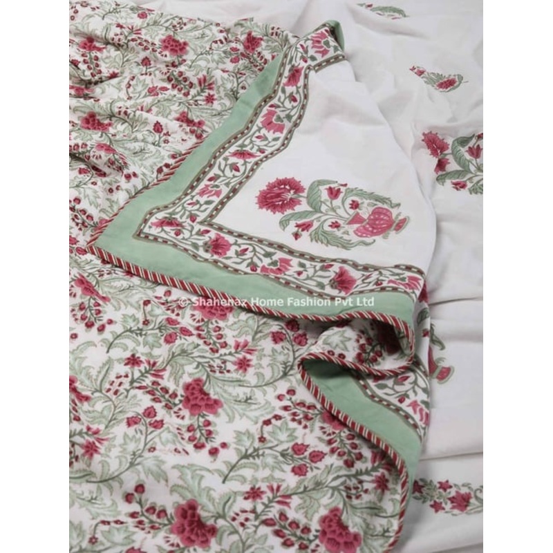 Shahenaz Guldasta E Shaheena Floral Pink & Green Cotton Double Reversible Dohar