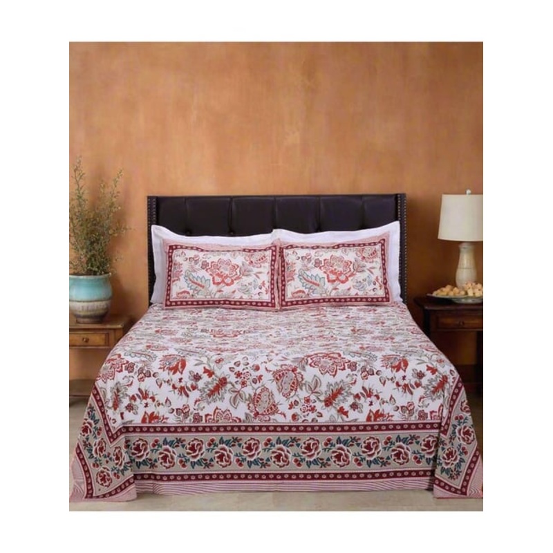 Wrap yourself in dreams with this set of 1 gayatri forest luxury double bedsheet and 2 pillow covers from Shahenaz. The luxuriously soft and breathable cotton fabric of 120 TC with a plain weave ensures a comfortable sleep, while the rich colors and captivating designs transform your bedroom into a tranquil oasis. This set adds a touch of sophistication to your slumber sanctuary.