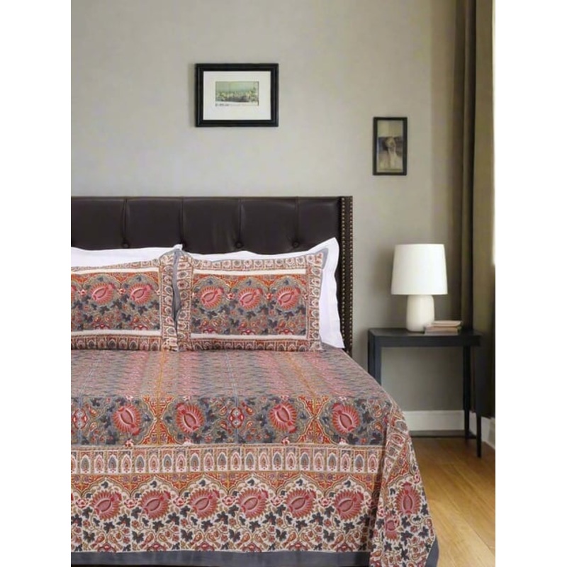 Drift into a sea of comfort with this set of 1 camerina double bedsheet and 2 pillow covers from Shahenaz. The luxuriously soft and breathable cotton fabric of 120 TC with a plain weave ensures a comfortable sleep, while the rich colors and captivating des