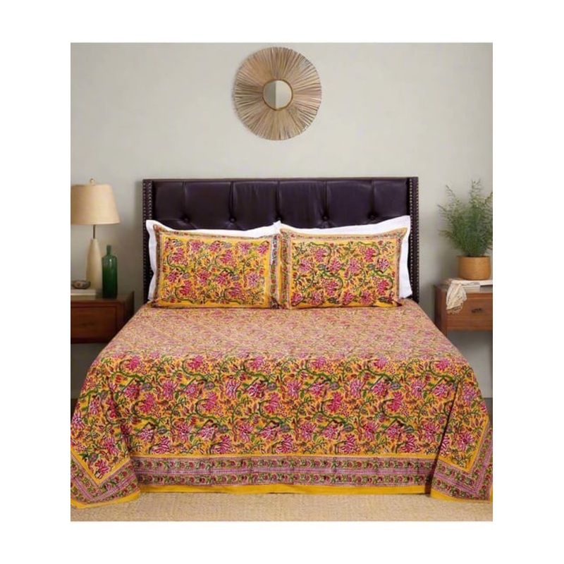 Indulge in the embrace of this cozy and stylish set of 1 gayatri single bedsheet and 1 pillow cover from Shahenaz. It is crafted to perfection using cotton with a plain weave of 120 TC. Beyond the captivating beauty, the luxuriously soft fabric ensures a cool and comfortable sleep. The included pillow cover completes the set, offering a touch of coordinated elegance to your sleep haven.