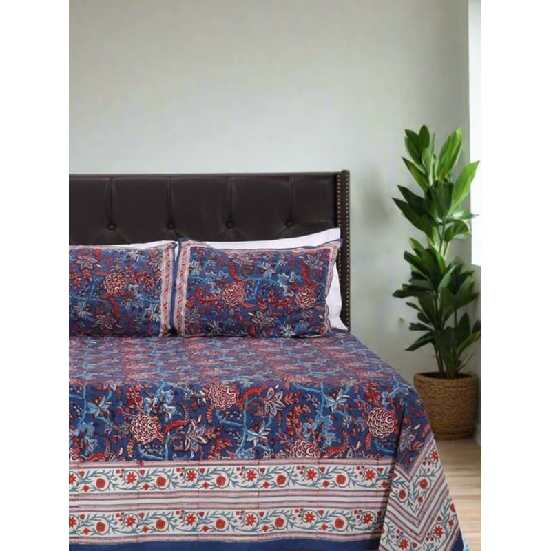 Shahenaz Navy Blue 220 TC Cotton Lagoon Single Bedsheet with 2 Pillow Covers