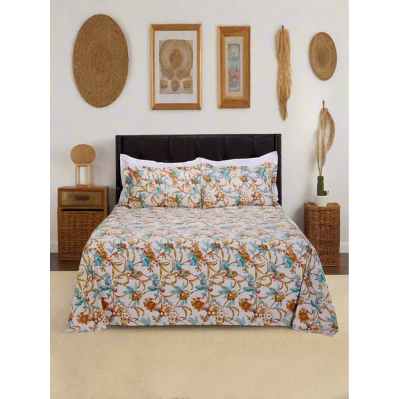 Wake up refreshed and rejuvenated on this cloud-like set of 1 azalea garden luxury double bedsheet and 2 pillow covers from Shahenaz. The luxuriously soft and breathable cotton fabric of 300 TC with a satin weave ensures a comfortable sleep, while the rich