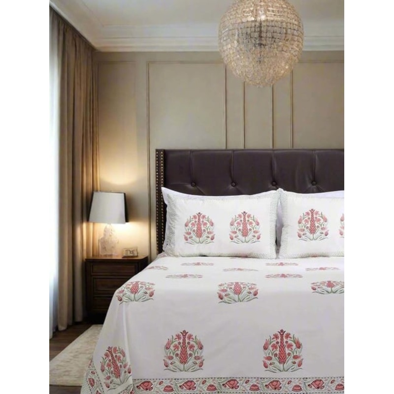 Sleep like royalty on this luxuriously smooth set of 1 bagh-e-kaamil double bedsheet and 2 pillow covers from Shahenaz. The luxuriously soft and breathable cotton fabric of 220 TC with a cotton percale weave ensures a comfortable sleep, while the rich colo