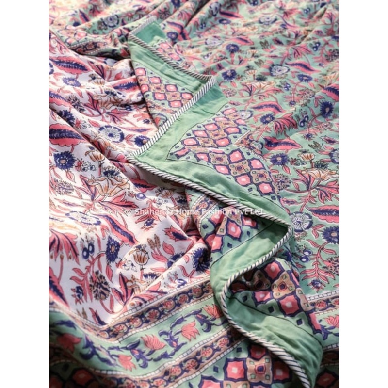 Shahenaz Sunderban Lilly Floral Sea Green Cotton Single Reversible Dohar