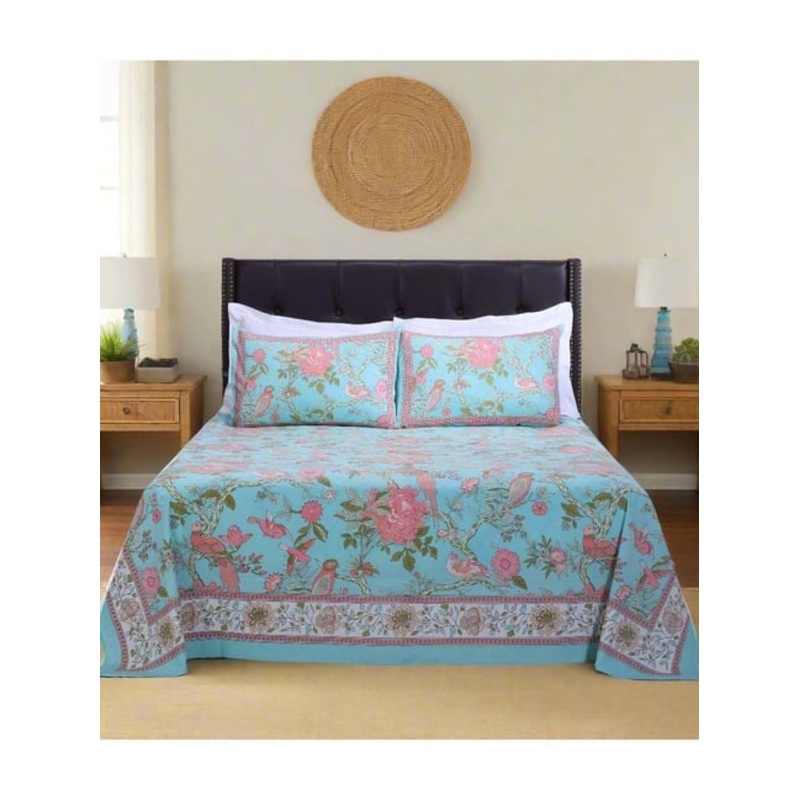 Sleep like royalty on this luxuriously smooth set of 1 rama paisley single bedsheet and 2 pillow covers from Shahenaz. It is crafted to perfection using cotton with a cotton weave of 220 TC. Beyond the captivating beauty, the luxuriously soft fabric ensures a cool and comfortable sleep. The included pillow covers complete the set, offering a touch of coordinated elegance to your sleep haven.