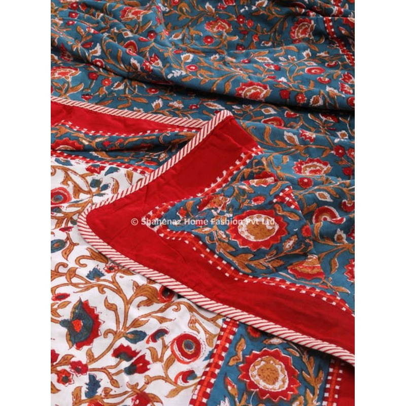 Shahenaz Vrindavan Floral Green Cotton Single Reversible Dohar