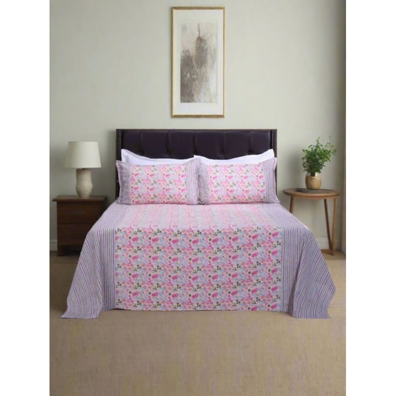 Sleep like royalty on this luxuriously smooth set of 1 rangeela double bedsheet and 2 pillow covers from Shahenaz. The luxuriously soft and breathable cotton fabric of 120 TC with a plain weave ensures a comfortable sleep, while the rich colors and captivating designs transform your bedroom into a tranquil oasis. This set adds a touch of sophistication to your slumber sanctuary.