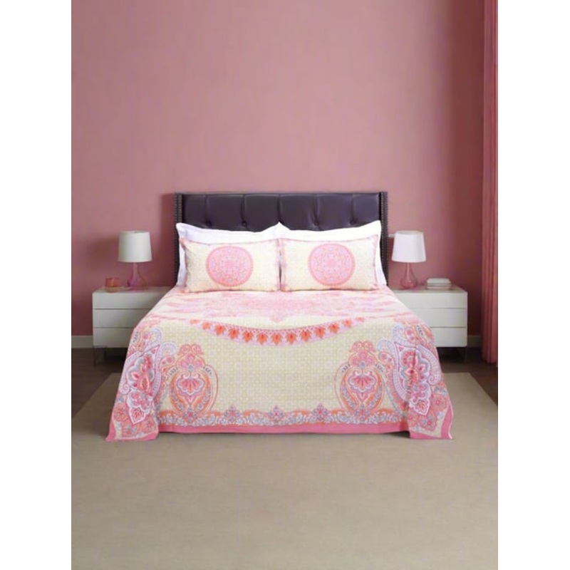 Drift into a sea of comfort with this set of 1 mandala double bedsheet and 2 pillow covers from Shahenaz. The luxuriously soft and breathable cotton fabric of 120 TC with a plain weave ensures a comfortable sleep, while the rich colors and captivating designs transform your bedroom into a tranquil oasis. This set adds a touch of sophistication to your slumber sanctuary.