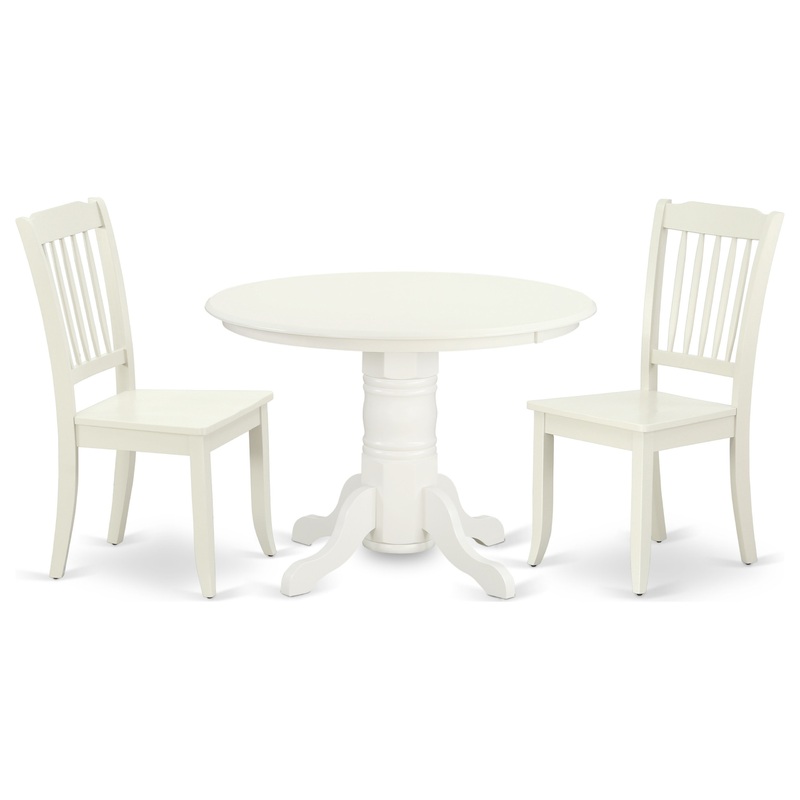 Anchor the dining room in effortless style with this beautiful SHDA3-LWH-W dining set, perfect for weekday meals and family gatherings alike. Classic round kitchen dinette table offers a rich stunning Linen White color to enhance any kind of living area or