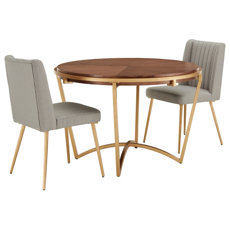 Shelley Natural Wood and Gold Metal Dining Set, 3 Piece Set – Midcentury – Dining Sets – by Inspire Q