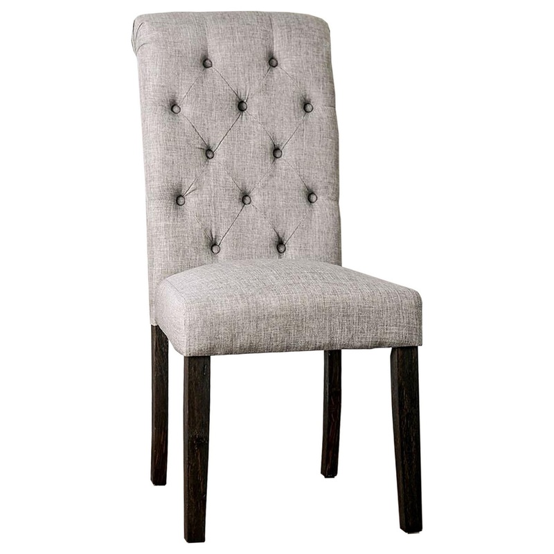 Side Chair with Button Tufted Backrest, Set of 2, GrayGive a quick makeover to your interior with the inclusion of this contemporary style Side Chair. Incorporated with padded seating and button tufted backrest, it is constructed sturdily from the solid wood frame and is upholstered with linen like fabric.