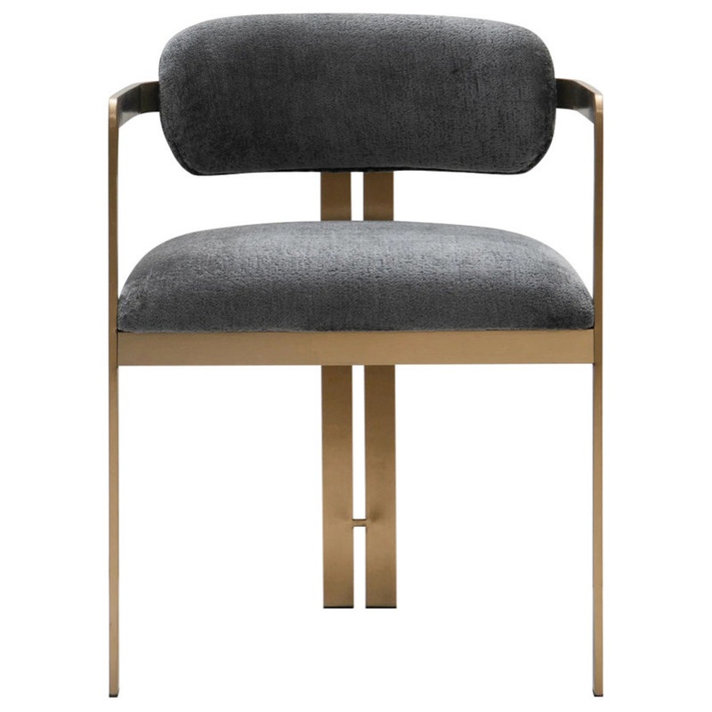 Introducing the Sidecar Dining Chair, inspired by the refreshing cocktail of the same name. This elegant chair features a comfortable seat and backrest upholstered in Hammered Chenille Fabric, shown in our charcoal color.