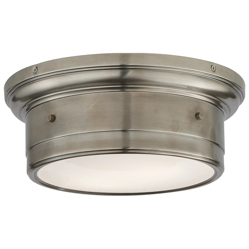 The Siena Small Flush Mount is evocative of a porthole, bringing a nautical note to your decor.This blocky flush mount makes a statement in the most subtle way with its industrial details and rich finish options. This fixture is available in five stately metal finisheswith whiteglass, and is trimmed with exposed hardware. TheSiena SmallFlush Mountis part of theStudio VC collection.