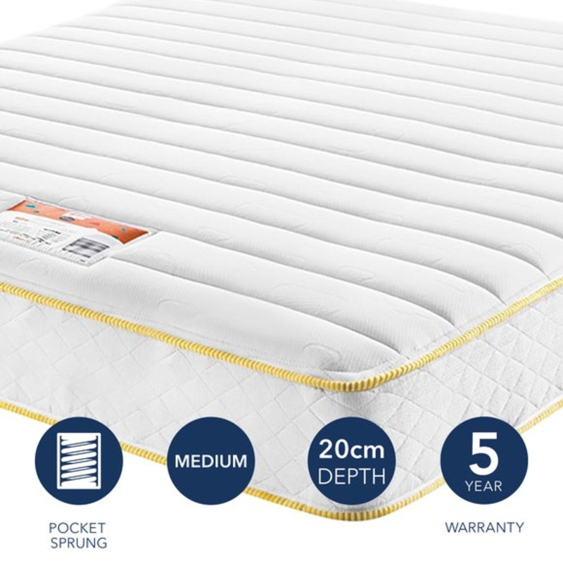 Kids mattress600 pocket springs for adaptive supportBreathable EcoComfort FibresHypoallergenicGive your child superior support with a layer of individual pocket springs that will adapt to and support your little one as they grow. With cooling EcoComfort Fi