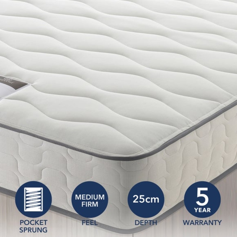 A great value mattress from Silentnight, designed to offer comfort, support and pressure relief. Featuring Mirapocket technology with 800 individual pocket springs.The advanced zoned Mirapocket spring system offers the ultimate in comfort. Each mattress wi