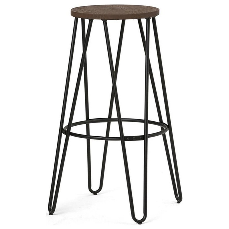 Inspired by industrial style, the Simeon Bar Stools minimalist look makes it a versatile piece of furniture that will enhance any space. Sit comfortably with support and stability on the solid wood seat that is anchored by a hair pin leg metal base and foo