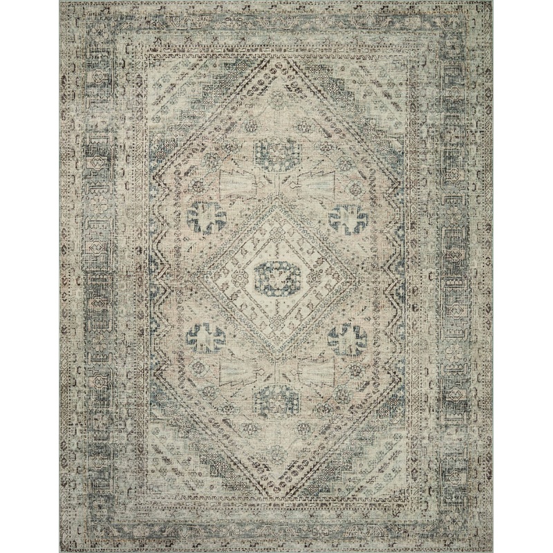 The Sinclair Collection for Magnolia Home by Joanna Gaines x Loloi is power-loomed of polyester, including 58% Global Recycling Standard (GRS) certified recycled polyester (made from recycled plastic bottles), certified by Control Union 1171944. Sinclair area rugs have incredible softness and durability comparable to classic power-loomed rugs, while also reducing waste in their production. This collection is also machine-washable, making it an ideal rug in high-traffic living rooms, hallways, entryways, and childrens rooms. The design features antique motifs with intricate details and slight distressing, creating a sophisticated, storied feel.